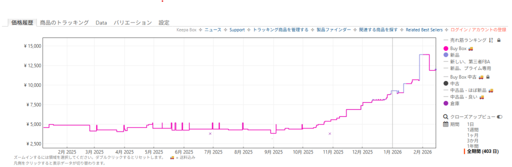これ、とあるメーカのSSD(2.5インチSATA/512GB)の値動き。